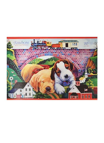 Альбом для рисования 20 листов А4 "Щенки и игрушки" офсет 110г/м2, выборочный лак, скрепка, Unnika