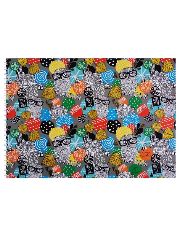 Альбом для рисования Unnika, "Совы в очках", А4, 20 листов, на гребне
