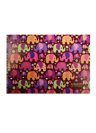 Альбом для рисования Unnika, "Яркие слоники (орнамент)", А4, 20 листов, на гребне