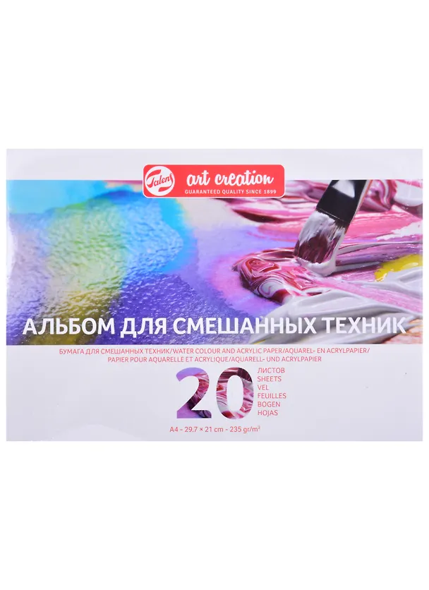 альбомы для смешанных Talens "Art Creation" разработаны для работы как сухими графическими материалами, так и различными видами красок. В альбоме использована чистоцеллюлозная бумага без добавления кислот и оптических отбеливателей. Бумага естественно-белого цвета плотностью 235 гр/м2. Для удобства пользования задняя часть обложки выполнена из плотного картона.