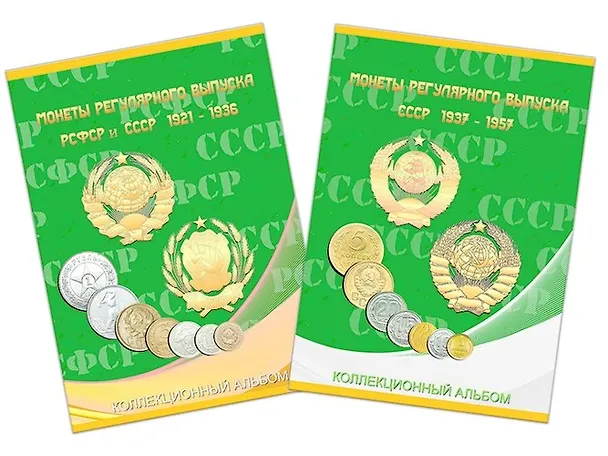 Альбом-планшет для монет СССР регулярного выпуска в двух томах, 1921 - 1936 гг. и 1937-1957 гг.
