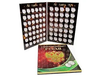 Альбом-планшет под современные рубли (1 и 2 рубля) с 1997 по 2014 год на два монетных двора
