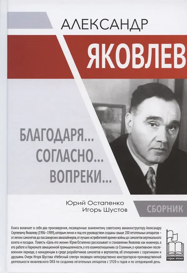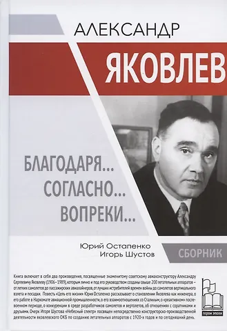 Сборник включает в себя два произведения, посвященных знаменитому советском авиаконструктору Александру Сергеевичу Яковлеву (1906-1989). Им лично и под его руководством созданы свыше 200 летательных аппаратов: от легких самолетов до пассажирских авиалайнеров, от лучших истребителей времен войны до уникальных самолетов вертикального взлета и посадки, от планеров до беспилотников. Эту традицию продолжает ОКБ имени А.С. Яковлева и сей день. Первое произведение - это повесть "Цель его жизни". Авиационный журналист и писатель Юрий Остапенко в свойственной ему уникальной полухудожественной манере увлекательно рассказывает о становлении А.С. Яковлева как инженера, о его работе в Наркомате авиапромы