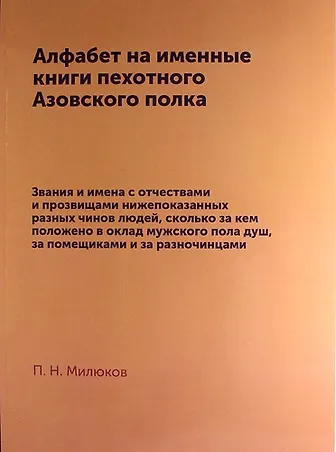 Алфабет на именные книги пехотного Азовского полка: репринтное издание