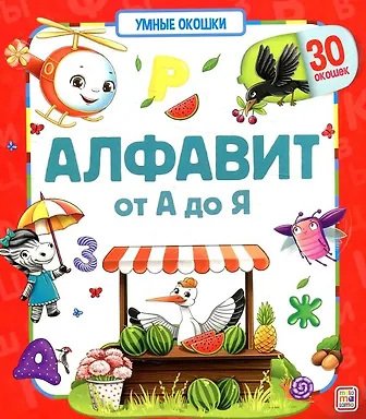 Книга «Алфавит» из серии «Умные окошки» поможет ребёнку выучить весь алфавит, расширить словарный. Внутри книжки — 12 страниц с яркими рисунками и 31 окошко разной формы. Книга выполнена из плотного картона с глянцевой ламинацией. Размер книги — 230*200 мм.