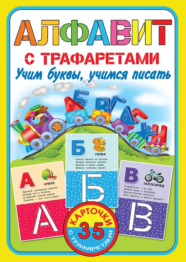 • Комплект карточек букв с трафаретами поможет ребёнку выучить буквы и приобрести навыки письма перед поступлением в школу.