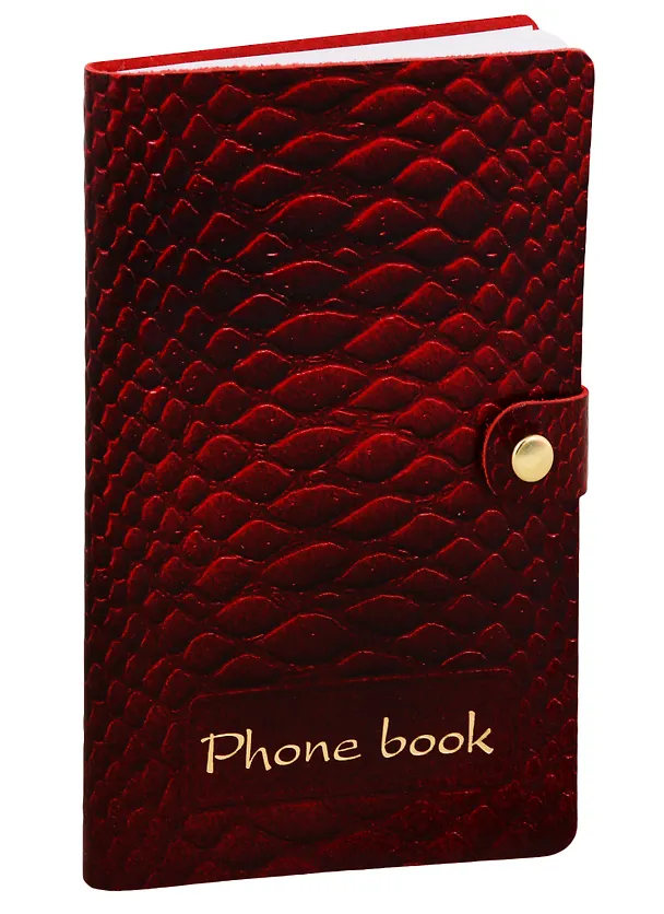 Алфавитная книга на кнопке А6+ 120л 173*100 , вишня, нат.кожа