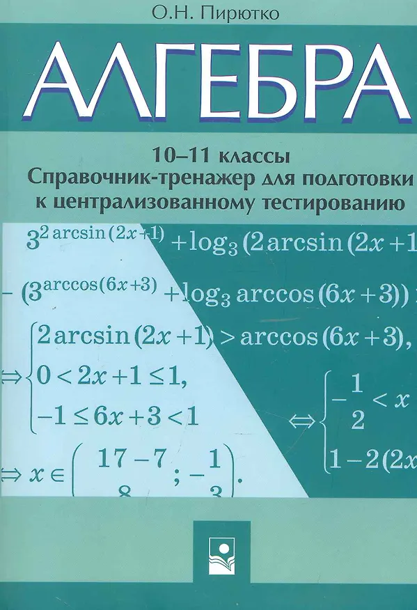 Алгебра. 10-11 классы: справ.-тренажер для подгот. к централиз. тестированию / (мягк). Пирютко О. (Маритан-Н)