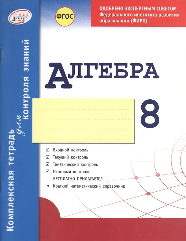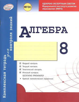 В пособии представлены контрольно-измерительные материалы по математике для проведения входного, текущего, тематического и итогового контроля результатов освоения основной образовательной программы учащимися 8 классов. Содержание пособия соответствует требованиям ФГОС ООО, содержанию УМК Ю. Н. Макарычева и коллектива авторов и УМК А. Г. Мордковича и коллектива авторов. В тетради представлены задания в объеме, соответствующем обязательному минимуму математического образования. К пособию прилагается "Краткий математический справочник" для 8 класса. Пособие адресовано учащимся 8 классов общеобразовательных учебных заведений, учителям математики.