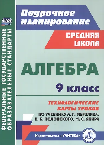 Алгебра. 9 класс: технологические карты уроков по учебнику А.Г. Мерзляка, В.Б. Полонского, М.С. Якира