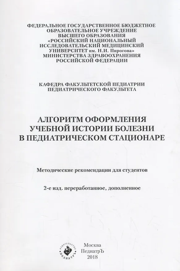 Методические рекомендации по написанию учебной истории болезни по факультетской педиатрии предназначены для студентов 4–6 курсов педиатрического факультета медицинских вузов. Они необходимы для эффективной работы у постели больного и правильного написания студенческой истории болезни. Также данные методические рекомендации будут полезны клиническим интернам, ординаторам и молодым специалистам при оформлении врачебной истории болезни в педиатрическом стационаре. Рекомендовано к изданию ЦМК по педиатрии ГБОУ ВПО "РНИМУ им. Н. И. Пирогова" Минздрава России, протокол № 2 от 18.12.2017 года.