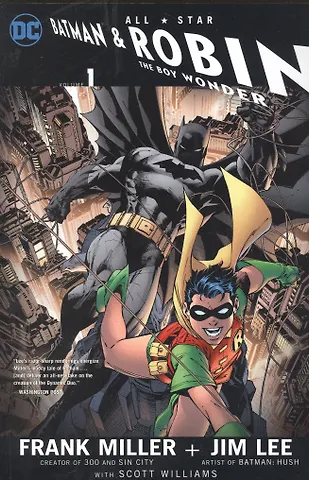 Written by Frank Miller Art and cover by Jim Lee & Scott Williams The talked-about hit Batman story by modern master Frank Miller (BATMAN: YEAR ONE, THE DARK KNIGHT RETURNS) and artists extraordinaire Jim Lee & Scott Williams (BATMAN, SUPERMAN) is now available in softcover format! Lee and Miller join forces to tell a new version of Dick Grayson's origin in a high-octane tale that unfolds with guest appearances by Superman, Wonder Woman, Green Lantern, Black Canary and more! This volume collects issues #1-9 of the explosive series! Plus a Jim Lee sketchbook and a variant cover gallery. Advance-solicited; on sale June 24 * 240 pg, FC, $19.99 US