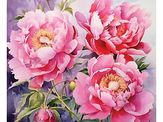 Алмазная мозаика (классическая) с подрамником, с полным заполнением "Акварельные пионы", 17 х 22 см