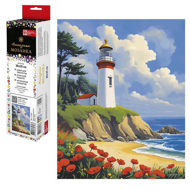 Набор для творчества. Алмазная мозаика. "Маяк и маки" (20*25 см)