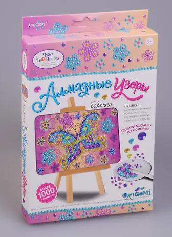 Готовую мозаику можно поставить на мольберт (входит в набор). Мозаику "Алмазные узоры" отличает высокое качество, авторские дизайны картинок, хороший состав набора.