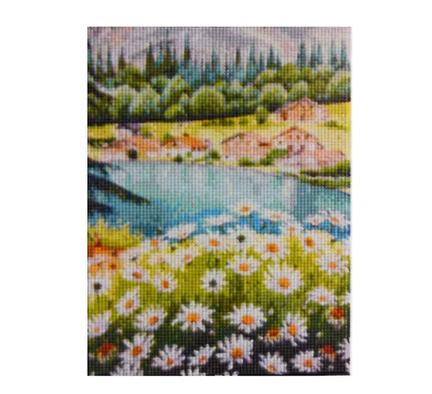 Алмазная мозаика (блестящая) с подрамником, с полным заполнением "Куст ромашки у озера", 22 х 32 см