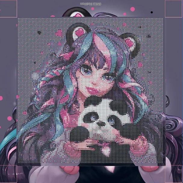 Алмазная мозаика арт. 68612 / 25 Девушка с пандой, размер: 30*30 см, (18 цветов страз, холст на подрамнике с напечатанной картиной, покрытый клеевым слоем и защитной пленкой, пакеты со стразами, стилус, лоток для страз, силикон для страз, клей, подвесы для подрамника, пинцет металлический, схема, дополнительные пакеты с zip-молнией, стикеры для нумерации zip-пакетов в комплекте, форма страз: круглая, тип выкладки: полная, картонная коробка)