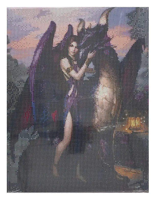 Алмазная мозаика (классическая) с подрамником, с полным заполнением "Девушка и дракон", 30 х 40 см