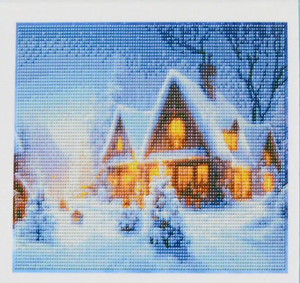 Собирала как раз под новый год. В наборе есть все что может понадобиться. Размер картины очень удобный, для меня один из больших плюсов - это наличие рамки (готовое оформление). В целом советую приобрести, результат получился не ярким, в темных оттенках. Доставка очень быстрая, повреждений не было. Минусов не обнаружила.