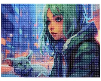 Алмазная мозаика (классическая) с подрамником, с полным заполнением "Зеленоглазые друзья", 30 х 40 см
