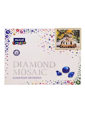 Алмазная мозаика MAZARI Два щенка на пеньке, 30х40 см (рама 33х43см), 1 дизайн, частичная выкладка, стразы разного размера