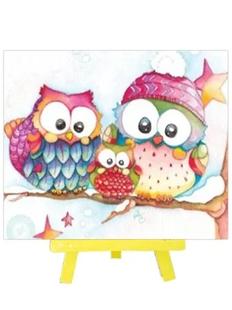 Алмазная мозаика MAZARI с мольбертом Совы на ветке, 21х25 см, частичная выкладка