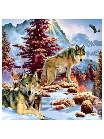 Алмазная мозаика MAZARI Семья волков в горах , 30х30см (рама 28.8х28.8 см) частичная выкладка, стразы разного размера