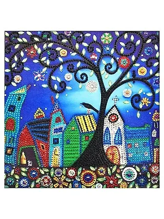 Алмазная мозаика MAZARI Сказочный городок 30х30см частичная выкладка, стразы разного размера