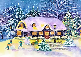 Алмазная мозаика на подрамнике "Зимний домик в лесу", 30х40 см
