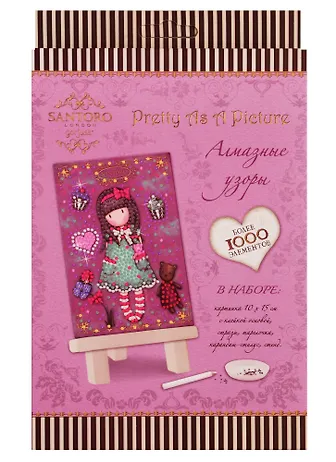 В комплекте: • картинка с клейкой основой (10 х 15 см), стразы (1000+), подставка, карандаш-стилус, тарелочка. Характеристики : • Возвраст 3+ Материалы : картон,полимерные материалы