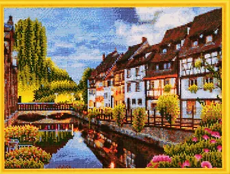 Дома у воды - это замечательная мозаика, которая красиво смотрится в готовом виде, напоминает старенькие города в Европе. Рисунок довольно четкий и детализированный. В наборе идет множество пакетов со стразами, инструмент, с помощью которого можно брать по одной или по несколько страз, клейкая основа. Занятие выкладкой очень кропотливое, но испортить картину скорее всего не получится, она все равно получится красивой, поэтому подойдёт любому человеку, хотя начать наверное лучше с картин поменьше