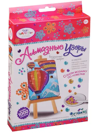 Готовую мозаику можно поставить на мольберт (входит в набор). Мозаику "Алмазные узоры" отличает высокое качество, авторские дизайны картинок, хороший состав набора.