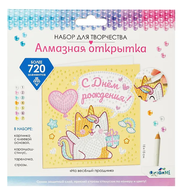Превосходный подарок для ребенка, который он может как оставить себе, так и подарить близкому. В наборе есть все, что нужно для творчества, инструкция очень легкая, а сам процесс увлекательный. Получается милая открытка, которая переливается, а внутри можно написать поздравление.