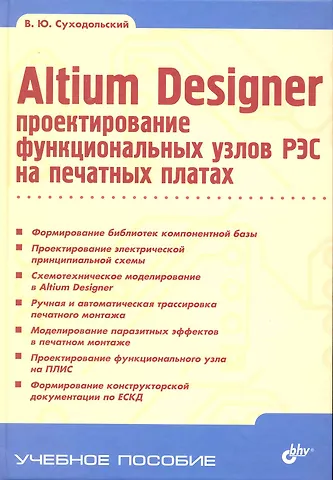 Книга посвящена проектированию радиоэлектронных функциональных узлов в среде Altium Designer. Описаны состав, настройка и основные приемы работы в среде Altium Designer. Подробно освещены вопросы формирования и редактирования электрической схемы, разработки печатной платы, а также трассировки печатного монтажа. Отдельно рассмотрены особенности реализации проекта на основе микросхем ПЛИС. Значительное внимание уделено схемотехническому моделированию. Приведены необходимые сведения о работе с библиотеками, взаимодействии с внешними базами данных, системе контроля версий, а также Экспорте результатов. Особенность книги - изложение материала с позиций сквозного проектирования изделия, начиная от