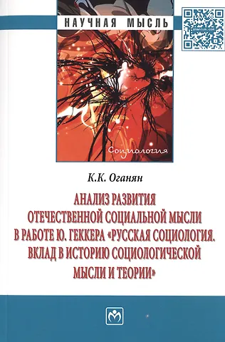 Работа является первым научным исследованием, в котором представлено целостное системное рассмотрение монографии Ю. Геккера «Русская социология...». Проанализирована специфика рассмотрения школ и направлений русской социологии в монографии Ю. Геккера и показаны достоинства и недостатки взглядов американского социолога. Научная цель его работы - представить западному читателю анализ различных школ и направлений русской социологии в историческом контексте. Впервые в истории социологии представлена переведенная автором с английского языка работа Ю. Геккера.