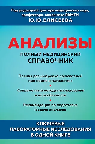 Самый современный и исчерпывающий справочник, содержащий всю необходимую информацию о лабораторных исследованиях и анализах. Внутри вы найдете описания часто используемых и редких методик и рекомендации по подготовке к ним, а также расшифровку результатов анализов и советы по исследованиям при тех или иных симптомах. В это обновленное издание включена информация по диагностике коронавируса.