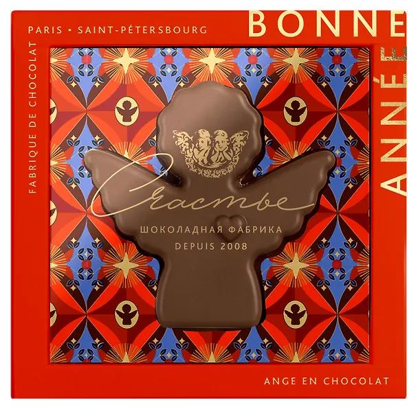 Один из любимых символов Счастья – ангел, который дарит вдохновение. Наши шоколатье облекли его в новую форму и создали фигуру из нежного 34% молочного шоколада. Мы сделали для ангела красочную коробочку с волшебным миром внутри, чтобы вы могли подарить целую гамму чувств тому, кто особенно дорог.