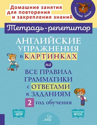 Вашему вниманию предлагается Тетрадь-репетитор "Английские упражнения в картинках на все правила грамматики с ответами к заданиям 2 год обучения".