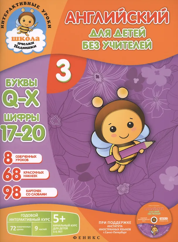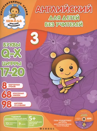 Английский для детей без учителей. Часть 3. Годовой интерактивный курс. 5+ (Комплект: книга-учебник+98 карточек+CD)