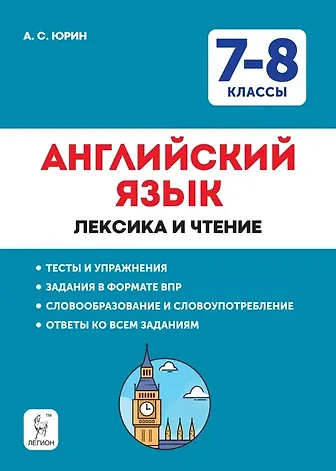 Пособие предназначено для тренинга, текущего контроля и промежуточной аттестации по английскому языку в 7–8-х классах общеобразовательных учреждений. Книга состоит из пяти разделов: «Словообразование», «Тематические лексические упражнения и тесты», «Фразовые глаголы», «Чтение», «Задания в формате ВПР для 7-го класса», каждый из которых содержит большое количество тренировочных упражнений. Ответы даны в конце пособия. Пособие составлено с учётом требований Федерального государственного образовательного стандарта основного общего образования и может быть использовано для поэтапной подготовки к ВПР и ОГЭ по английскому языку. Тетрадь адресована учащимся и учителям.