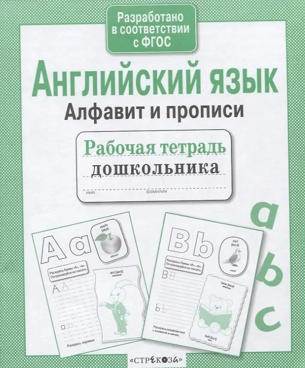 Можно выучить и научиться писать все буквы английского алфавита, заглавные и строчные печатные, а также простые слова. Кроме этого в книжке представлены красивые понятные картинки, которые можно раскрасить, а также выучить некоторые названия предметов, животных.
