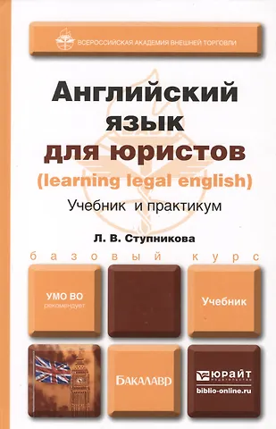 Настоящий учебник подготовлен в соответствии с государственным образовательным стандартом высшего профессионального образования нового поколения по иностранному языку для специальности «Юриспруденция» с присвоением лицам, успешно прошедшим итоговую аттестацию, квалификации (степени) «бакалавр» и квалификации (степени) «специалист». Цель учебника — помочь учащимся овладеть основами англоязычного юридического дискурса, освоить англо-американскую юридическую терминологию, сформировать лингвистическую, профессиональную и стратегическую компетенции. Материалы прошли апробацию при работе со студентами и слушателями различных уровней на юридическом факультете Всероссийской академии внешней торговли