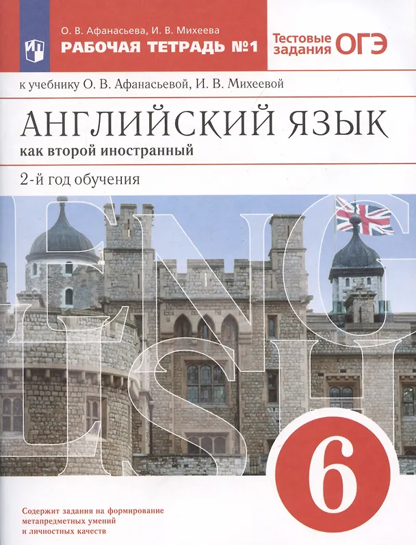 Английский язык как второй иностранный: второй год обучения. 6 класс. Тестовые задания ОГЭ. Рабочая тетрадь № 1. К учебнику О.В. Афанасьевой, И.В. Михеевой