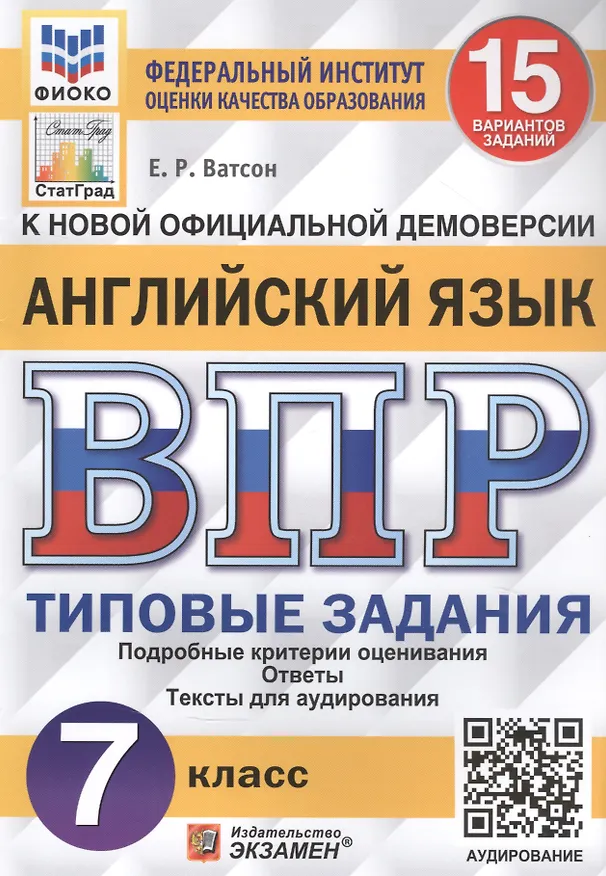 Английский язык. Всероссийская проверочная работа. 7 класс. Типовые задания. 15 вариантов заданий