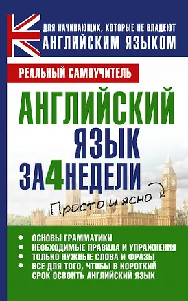 "Английский язык за 4 недели" - это уникальный самоучитель, предназначенный для тех, кто не знает английского языка, но хочет им овладеть. За четыре недели обучения читатель с помощью этой книги сможет приобрести самые необходимые знания и навыки, которые позволят ему освоить основы английского языка. Книга содержит необходимые грамматические сведения, правила и упражнения, самые нужные слова и фразы. Отличительная черта самоучителя - доступность и четкость подачи учебного материала. Книга состоит из двух частей основного текста и краткого англо-русского словаря. Издание адресовано всем желающим изучить основы английского языка в короткие сроки, затратив минимум усилий.