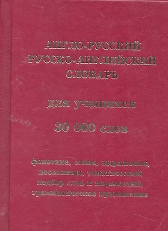 Словарь содержит около 30 тысяч слов, краткий фонетический и грамматический справочники, таблицу английских глаголов, изменяющихся не по общим правилам, тематический подбор слов и выражений, пословицы.