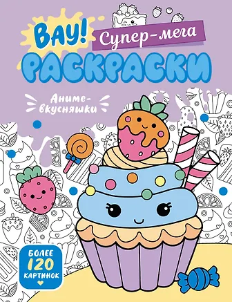 Замечательная яркая обложка, милое пирожное, более 100 разнообразных изображений для раскрашивания, интерактивные задания, очень толстая книга удобного формата для того чтобы читать