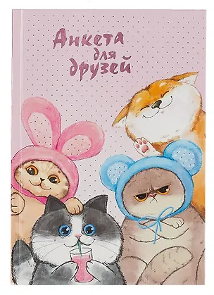 Твердая глянцевая обложка с симпатичными котиками, оформлена анкета в розовых тонах.