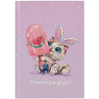 Прекрасный подарок для девочек. Анкета не большого размера. Яркий, красочный и милый рисунок на обложке. Цветные страницы, достаточно твердые для тетради. Прекрасная альтернатива, тем анкета, которые мы создавали сами. Ребенок был в восторге. Просит купить ещё на подарок для своей подруги.
