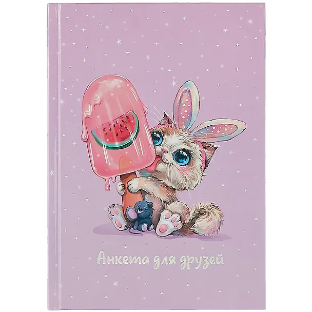 Анкета для друзей А5 128л "Зайка-сладкоежка" 7БЦ, глянц.ламинация, тиснение фольгой